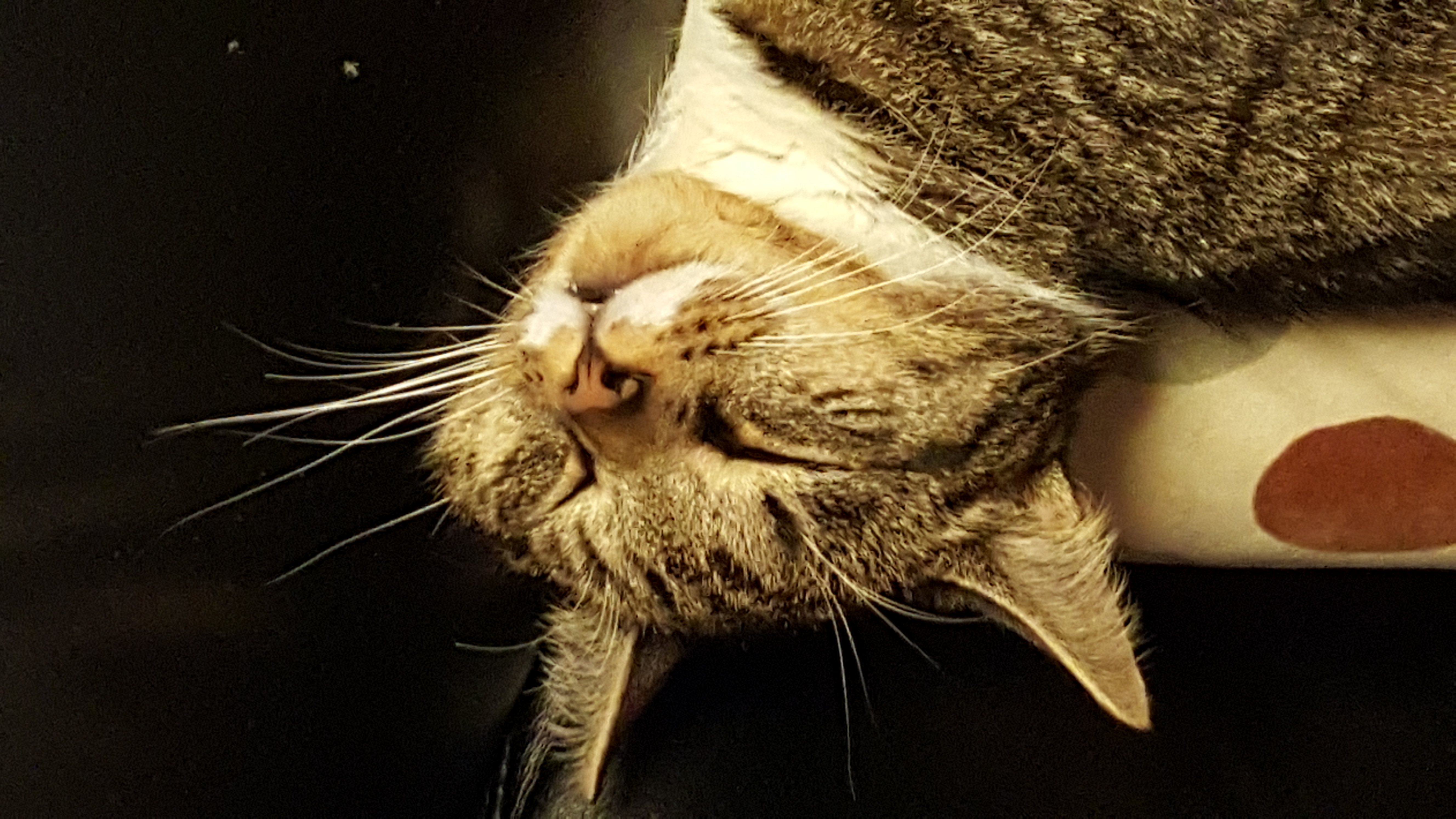 Her ses Tinkie (egentligt Tinkerbell, idet hun oprindeligt havde et halsbånd med en klokke, der ringede, når hun dukkede op hos os), min dejlige hunkat. Hun er desværre ikke hos os mere, da hun havde en sygdom og måtte aflives.